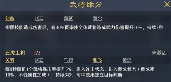 张飞作为第三顺位,专注提供增益强化与重伤补足。推荐战法为「鼓破千雷」与「重创」:前者提升自身攻击力及技能发动率各10%,后者可高效施加重伤层数。鉴于张飞技能格数受限,装备选择应优先确保上述两战法稳定释放。全队需统一配置3S级枪兵兵种,由此获得全属性30%加成,不仅契合桃园三人兵种适配性,更能加速重伤叠层效率,强化对敌方的压制力。