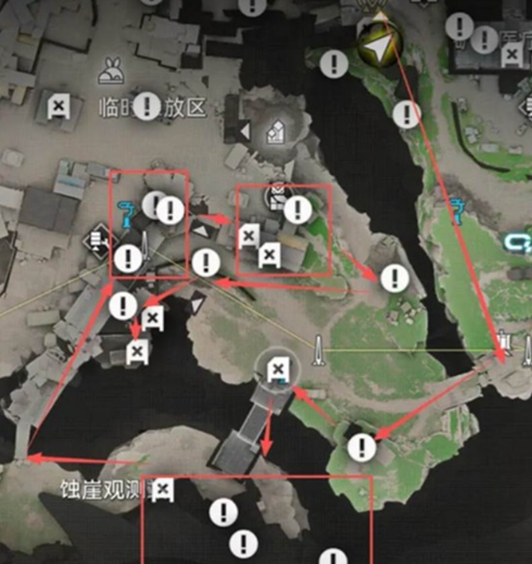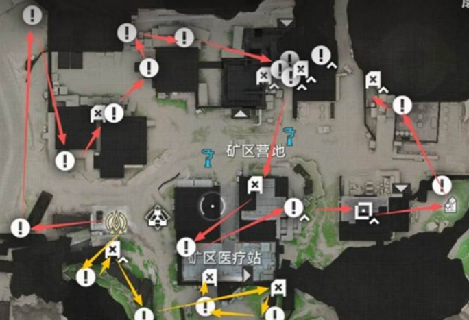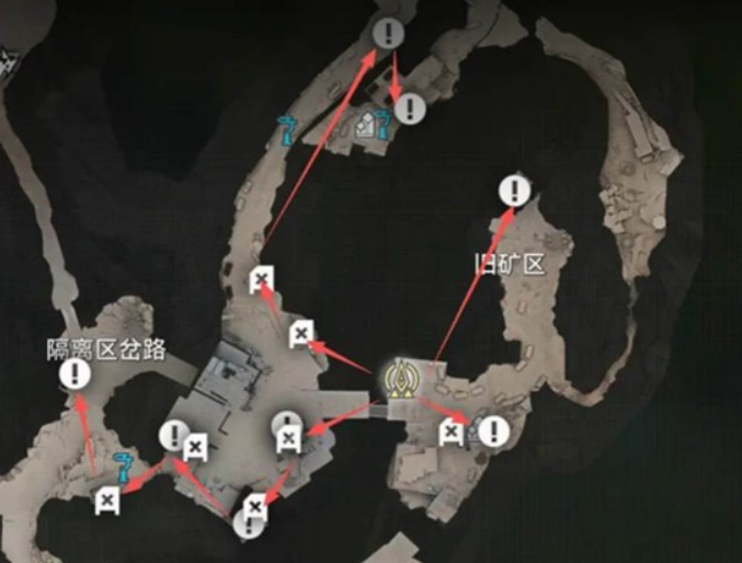 营地周边的矿脉通道区分布着多个点位,醚质9和醚质14都可以在这里找到。从后侧的集装箱滑索入口进入,就能很快定位到这些资源。