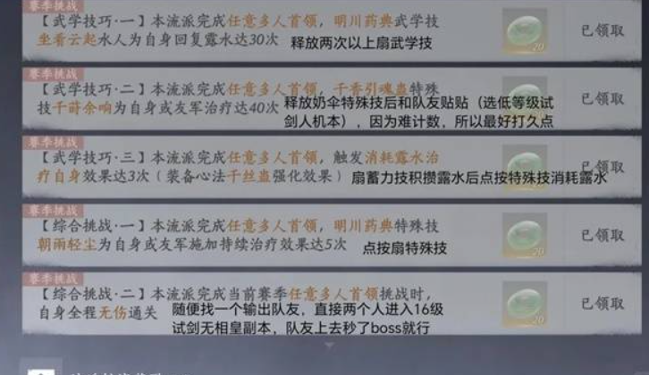 点击追踪流派挑战后一键套用方案,能防止因未携带必备心法而无法完成挑战的情况。
