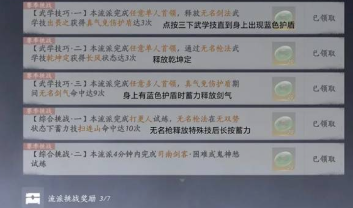 如果只想拿到我即是江湖称号的,注意只用完成八个流派(现在总共九个)就能拿到了。