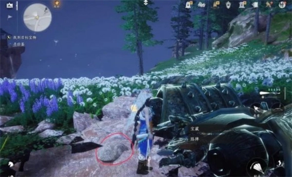 传送至【浮英野】界碑,宝物在标记位置附近。