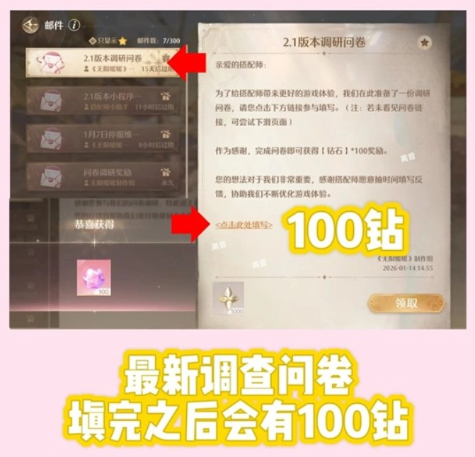 最新的调查问卷!填写后有100钻!