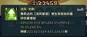 5、被动技能:流风·利荆(增加终伤技能)效果:使生效目标的最终伤害增加55.5%,持续时间6秒。搭配神器“复活”技能,可进一步提升队伍容错率。