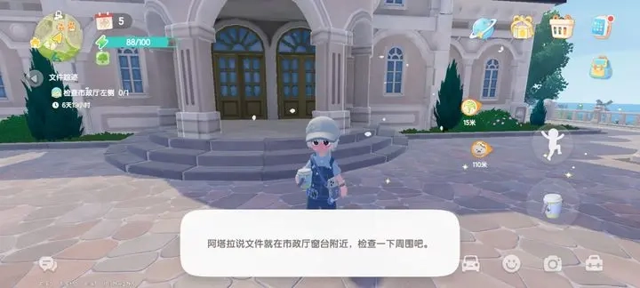 进入游戏后,发展家会接到镇长阿塔拉的电话。按照指引前往市中心市政厅门口,触发筹备任务。接着跟随指引围绕市政厅走一圈。