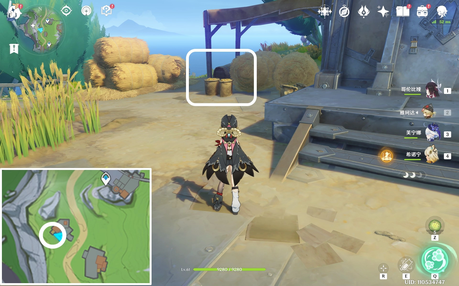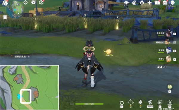 对话后她会让旅行者帮忙收麦子,不过不着急,在她小屋和麦田旁的草棚中有一个普通的宝箱。