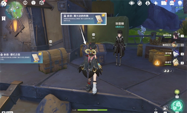 交付后就能获得食谱「蘑幻之菇」,以及两个宝箱。其中精致的宝箱内部还有食谱「篝火边的欢腾」