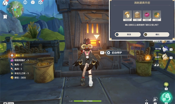 靠近机器别走,一出现「停止烤制」就立刻点击停止,即可获得「美味的蘑幻之菇」。