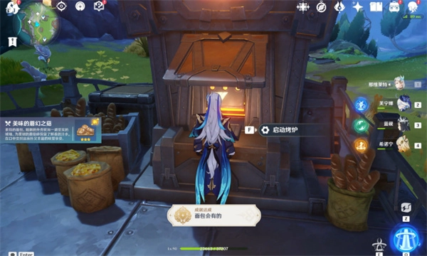 随后就在旁边机器烤面包,点击「启动烤炉」输入食材。