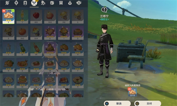 随后继续烹饪两个,一共烹饪三个「美味的蘑幻之菇」,再去找东侧同样头顶问号的「兰塔宁」