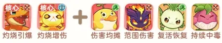 四、阵容解析:1、小炎龙拥有高额群体伤害,其机制包含叠加灼烧效果并可引爆。2、搭配同样具备叠加灼烧能力,还能额外提供灼烧增伤效果的火仔,能打出高额持续伤害与机制性爆发伤害,即便被控制,灼烧效果也会持续造成伤害。3、搭配鸭宝可实现伤害均摊,防止队伍快速减员,进化后的鸭宝还能提升怒气回复速度,助力队伍更快叠加灼烧效果。4、若队伍养成度较高,可在任意位置选择焰影儿来进一步提升队伍输出。