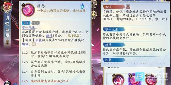 以上就是小编为你整理的“阴阳师SP蚀月吸血姬技能介绍”,更多游戏攻略请关注灵宝!