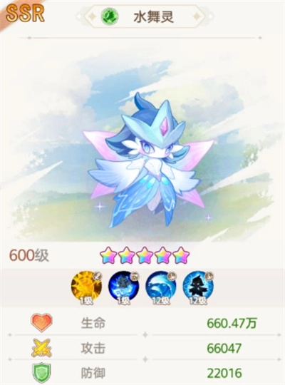 3、如果玩到后期,所有的SSR都会被UR替代,到了后期,我们就可以把肉盾向攻略中的大树去调整。此时队伍中一共有四个位置:受气牛/大角武士/萌树精+小绿蜥+咕咕鸡这种组合占据了三个位置,最后一个全能位就可以根据需要调整,这里面有几个选择。第一个水舞灵,这是个SSR,纯粹的奶妈,单奶。前期挺好用,越到后面感觉越一般。绿叶宝也是SSR,是一个群奶,群奶奶量没有单奶大。但是他属于一个功能性的奶妈,不只是能奶,他的群奶在打远征时很好用,可以保证队伍血线在一个健康的水平。