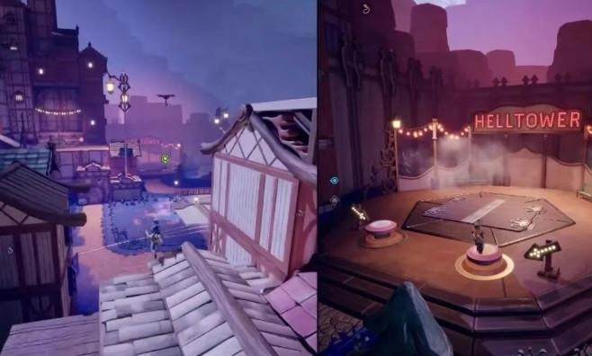 来到广场区域,向右边走,来到游乐场,找到"HELLTOWER"的标识。和两匹马互动来触发这个小游戏