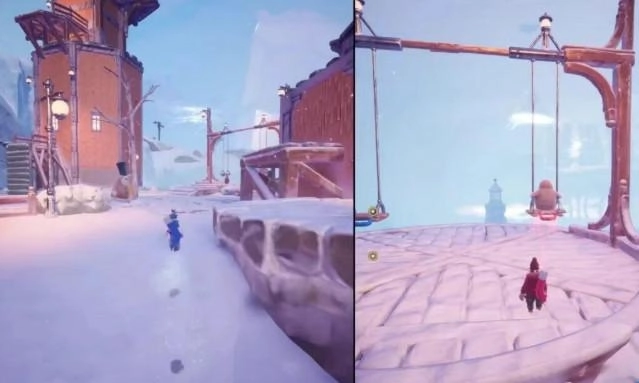 小镇广场区域,两个人同时按下按钮,会有塔升起来,爬上顶层,两个人同时解锁成就(爬上去比较难,网上有很多卡bug的上塔方式)