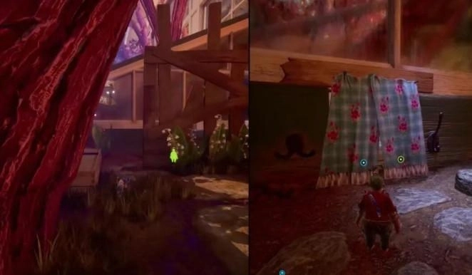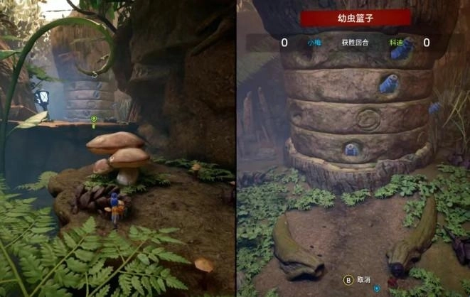 距离上一个小游戏不远,在小梅给第一棵物浇水后,来到一片有着许多弹跳蘑菇的区域。利用这些蘑菇向左走,越过一些石头之后就会发现小游戏