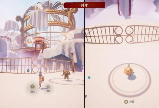 获得飞行能力之后来到室外区域,初始平台位置下方的白云上可以看到一个排球场