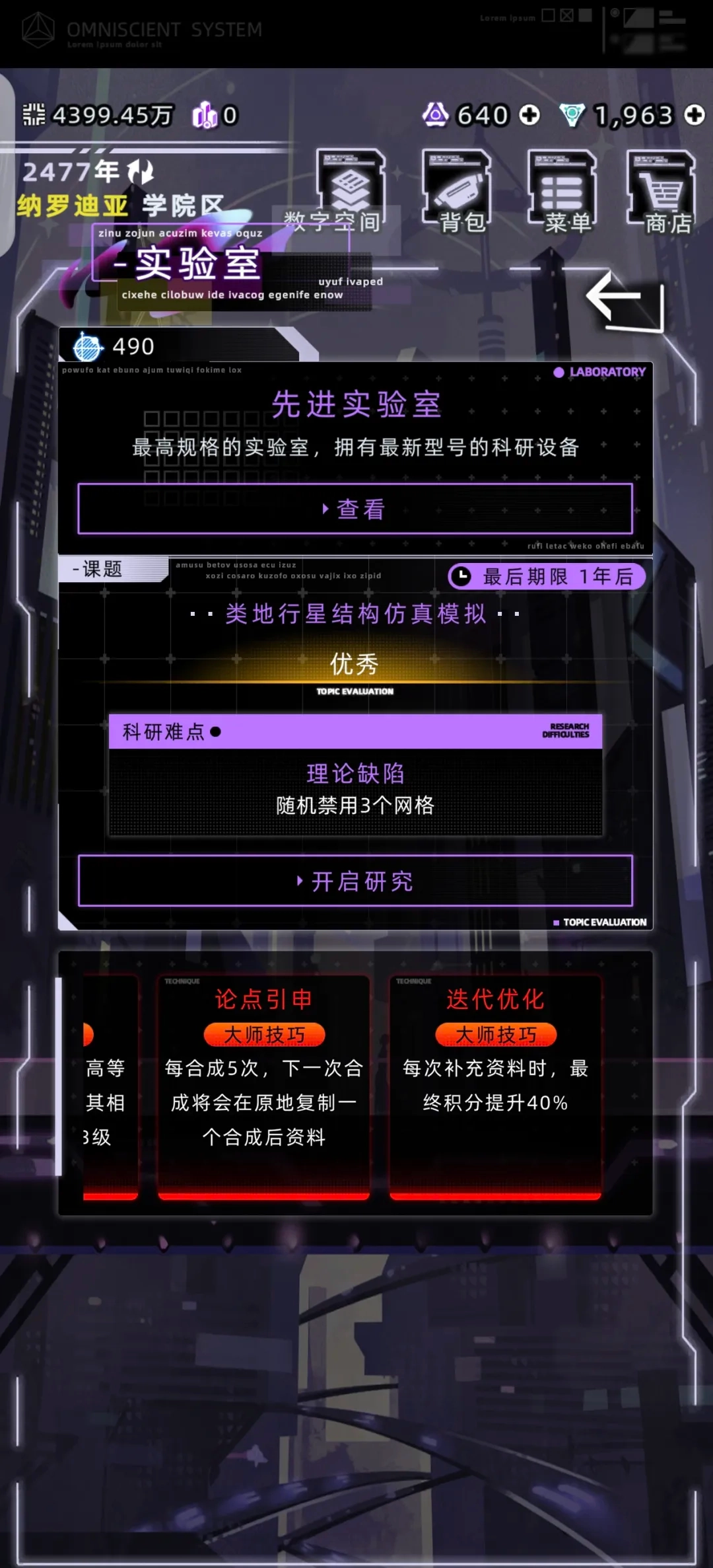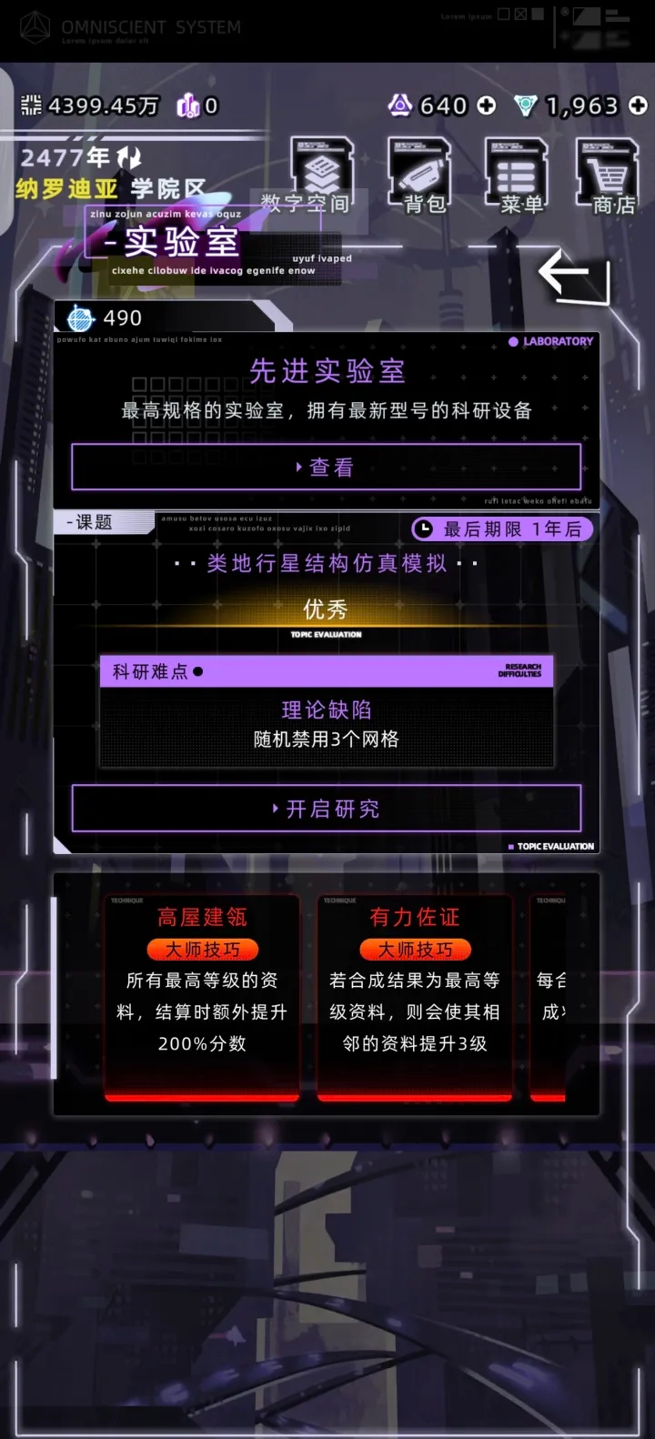 3. 实验研究开始前记得做好存档,这样就算研究失败了也能读档重新开始,避免辛苦收集的材料白白浪费。提交论文之前也建议存个档,要是对分数不满意还能通过SL(存档读档)来刷出理想的评分。