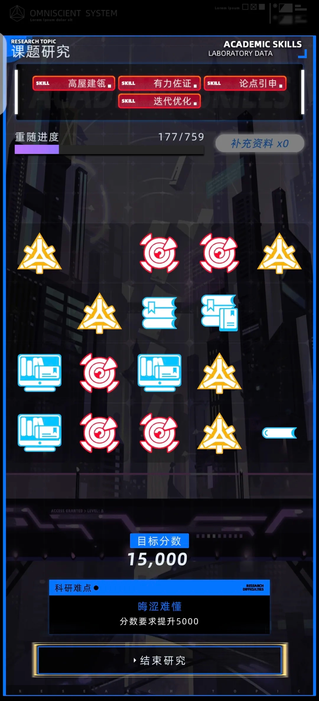 2.每年先看广告再来一次研究机会,配合满进度资料,一年稳定研究两次没问题。资料差一点没满就选收集资料的学业任务,缺学术点数就选学术点数任务,灵活调整别死磕。