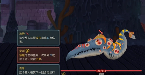 鳗鱼形象外加全身红眼,是挺骇人的。多人难度更高,单人打着会稍微轻松一点,血量达到70及一下会被击晕,可以在攻击回合利用这个机制打断。醒来会尖叫,给你上99层易伤,会控血量打着压力会小一些,平时会塞眩晕。