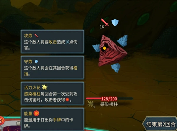 这个精英除了血厚,特性是自带火力火花,每回合第一次被打掉血,会给我们补能量,基本约等于无负面效果加费,经过一层的补强过的卡组,一般打着不会有太大压力。
