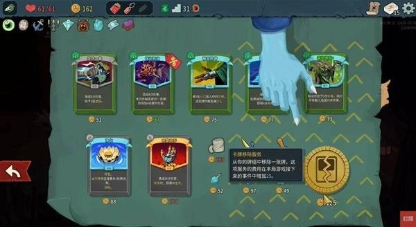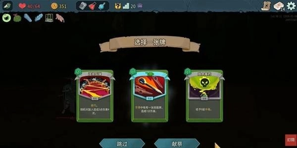 首先要明确游戏最核心的策略——精简牌组。每场战斗结束后,千万别盲目拿牌,因为卡组里的牌越多,抽到强力卡或核心卡的概率就会越低。一旦确定了本局要走的流派,要是奖励的三张牌都和你的流派不相关,就算是金卡也建议直接跳过奖励环节。