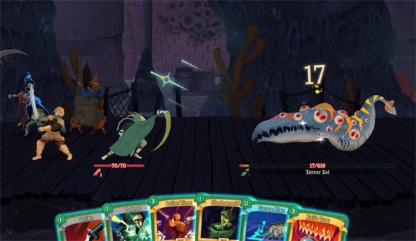 围绕一张卡来构建思路,只要有这张卡就能搞定伤害输出,后面所有和伤害相关的环节都可以省去。拿到“吊杀”这张卡后,就可以直接往商店和问号区域走,要么删牌要么找过牌卡。一般来说,打精英怪用四张“吊杀”就能稳定打掉195血,打boss最多用六张就够了。需要注意的是,遇到无实体的怪物时很容易失败。