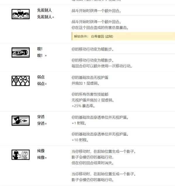 13.弱点,2分 完全的穿透下位,除非开门自带不然不会抓。升级版所有技能无视护盾,可盗贼的特点就是大部分技能无视护盾,完全无用。