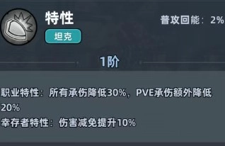 1. 坦克特性:该职业特性与其他坦克相同,均为所有承伤降低,不过其幸存者特性具体表现为伤害减免。