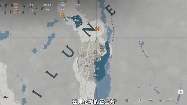 在佩伦城的正上方,地图字母N的右下角。