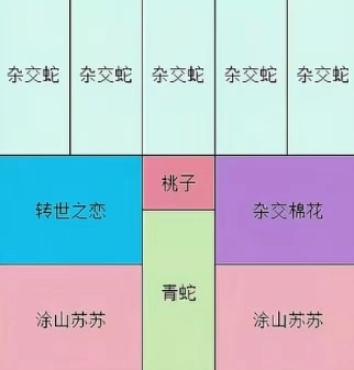 超杂为主C:按图内摆法上阵(青蛇/杂交蛇可根据情况调动,海藻可换一个紫薯+20易伤)。