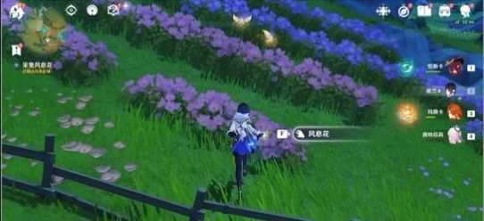 2、采集风息花,在旁边的花田采集三朵风息花