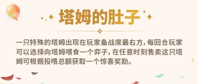 塔姆的肚子会以一个独立单位的形式固定在备战席的最右边。每个回合你都可以往里面“喂入”任意一个弈子,之后随时可以将其售出,并根据你喂入的所有弈子的总费用来获得随机奖励。操作的核心在于成本控制,建议投入那些暂时用不上的1费或2费棋子,避免把核心主C或者关键的高费卡喂进去,这样才能兼顾资源利用效率和阵容的稳定性。