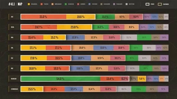 欢迎查阅41.1更新的各地区地图人气度和地图轮换报告。